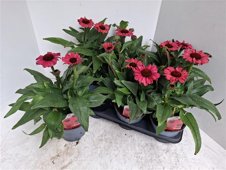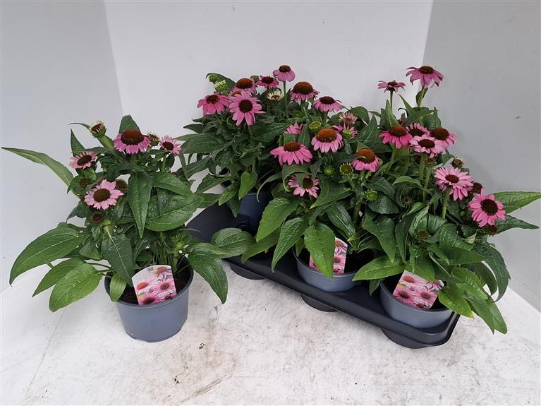 Al enkel jaren hebben we de Echinacea (zonnehoed) in een 15cm pot in de kleuren rood, roze, geel, wit en groen in het assortiment.